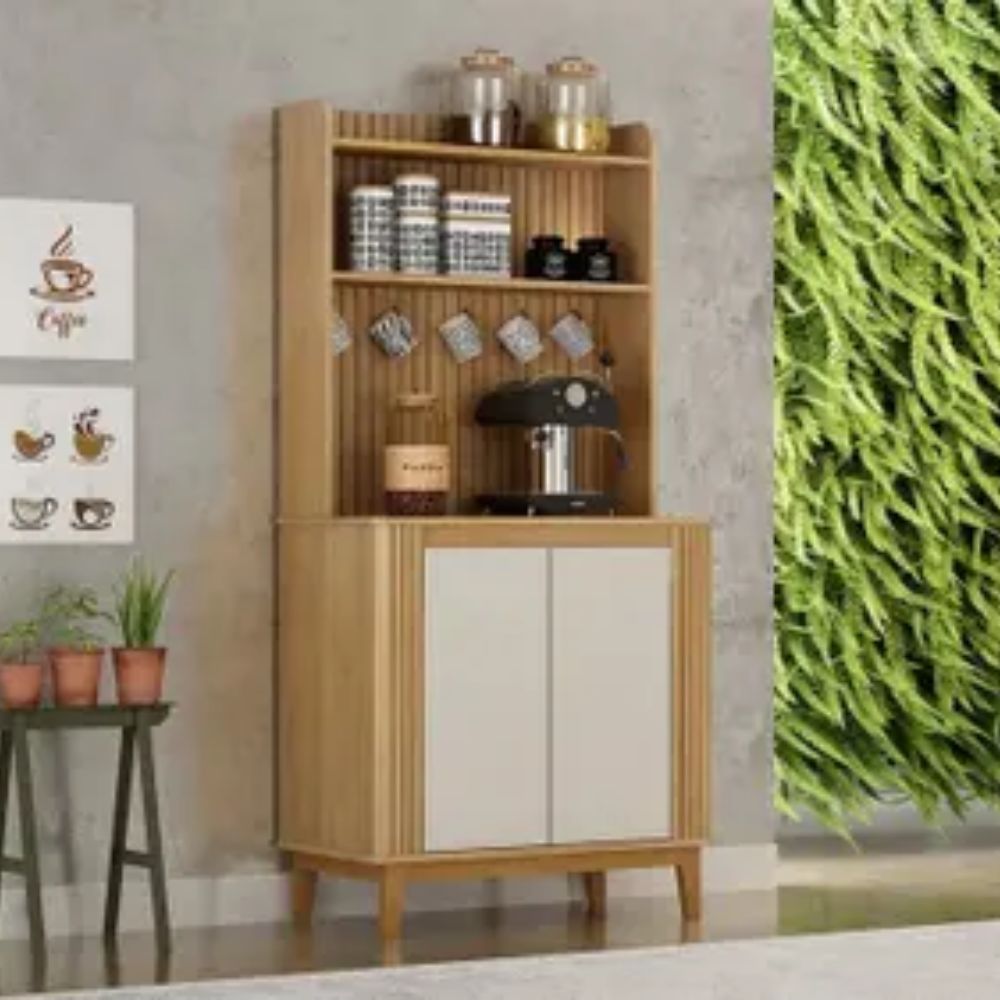 Fabricado em MDF de alta qualidade, oferece resistência e estabilidade para acomodar cafeteiras, utensílios, xícaras, potes e objetos decorativos. Seu acabamento fosco proporciona um visual contemporâneo e fácil de harmonizar com diferentes estilos de decoração.