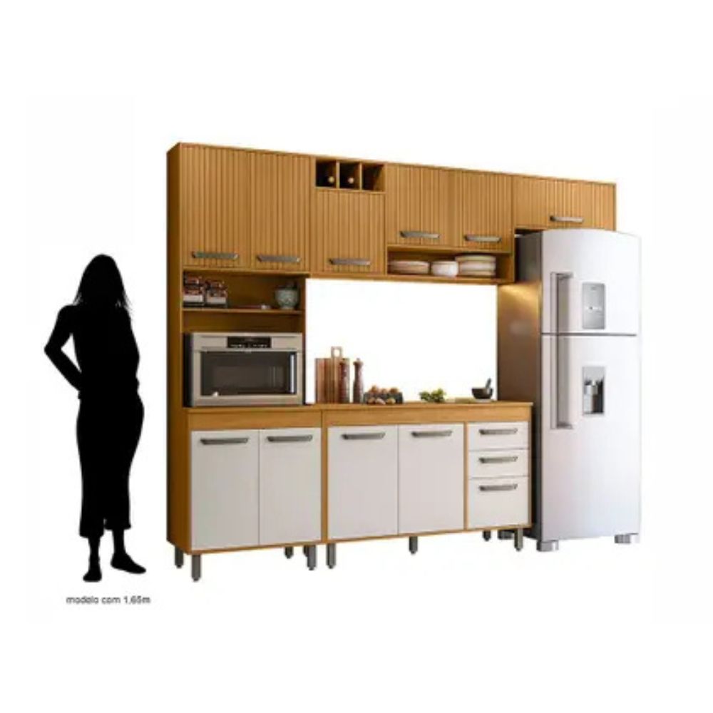 A Cozinha Compacta Malta da Poliman foi desenvolvida para oferecer funcionalidade, organização e um visual contemporâneo para o seu ambiente. Com acabamento em Freijó, Ripado e Off White, o conjunto traz um toque sofisticado e atual, valorizando qualquer cozinha.