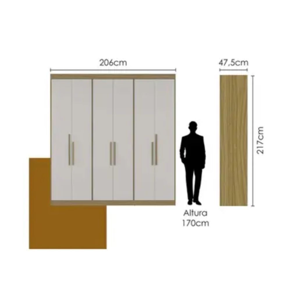 Guarda-Roupa Casal Herval PH1804 6 Portas com Espelho e Pés Cedro/Off White