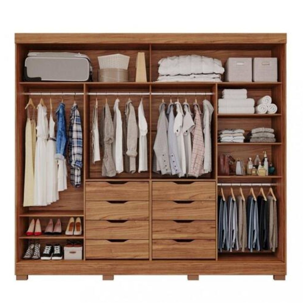 Internamente, dispõe de cabideiros em alumínio com suporte metálico, oferecendo segurança para acomodar roupas longas e pesadas. Os puxadores em alumínio complementam o design contemporâneo, enquanto os pés em ABS elevam o móvel do chão, facilitando a limpeza e protegendo contra a umidade.