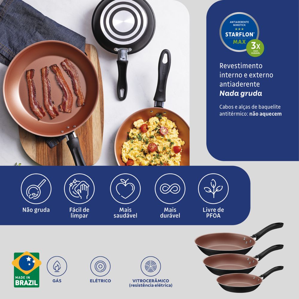Jogo de Frigideiras Tramontina Linz – 3 Peças | Antiaderente Starflon Max