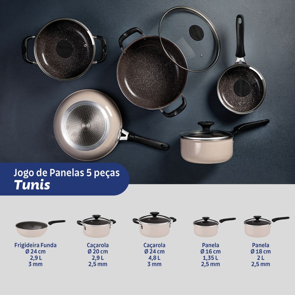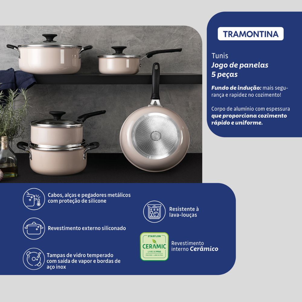 Jogo de Panelas Tramontina Tunis 5 Peças – Charmoso, Prático e Durável
