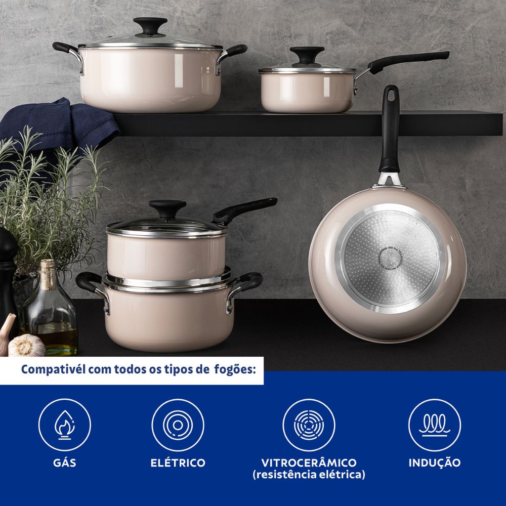 Compatível com fogões a gás, elétricos, vitrocerâmicos e indução.