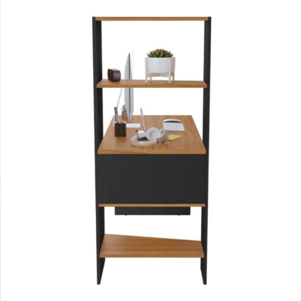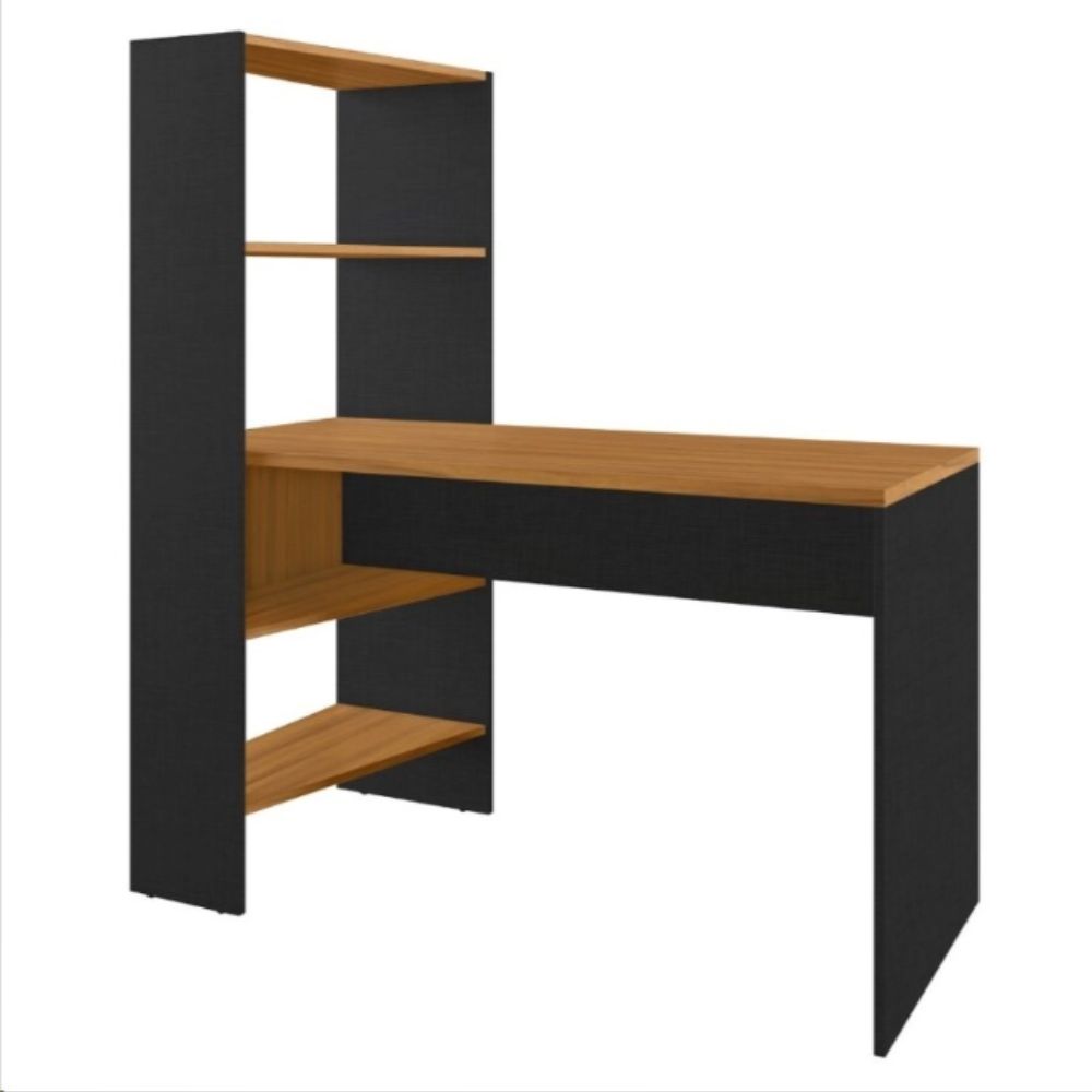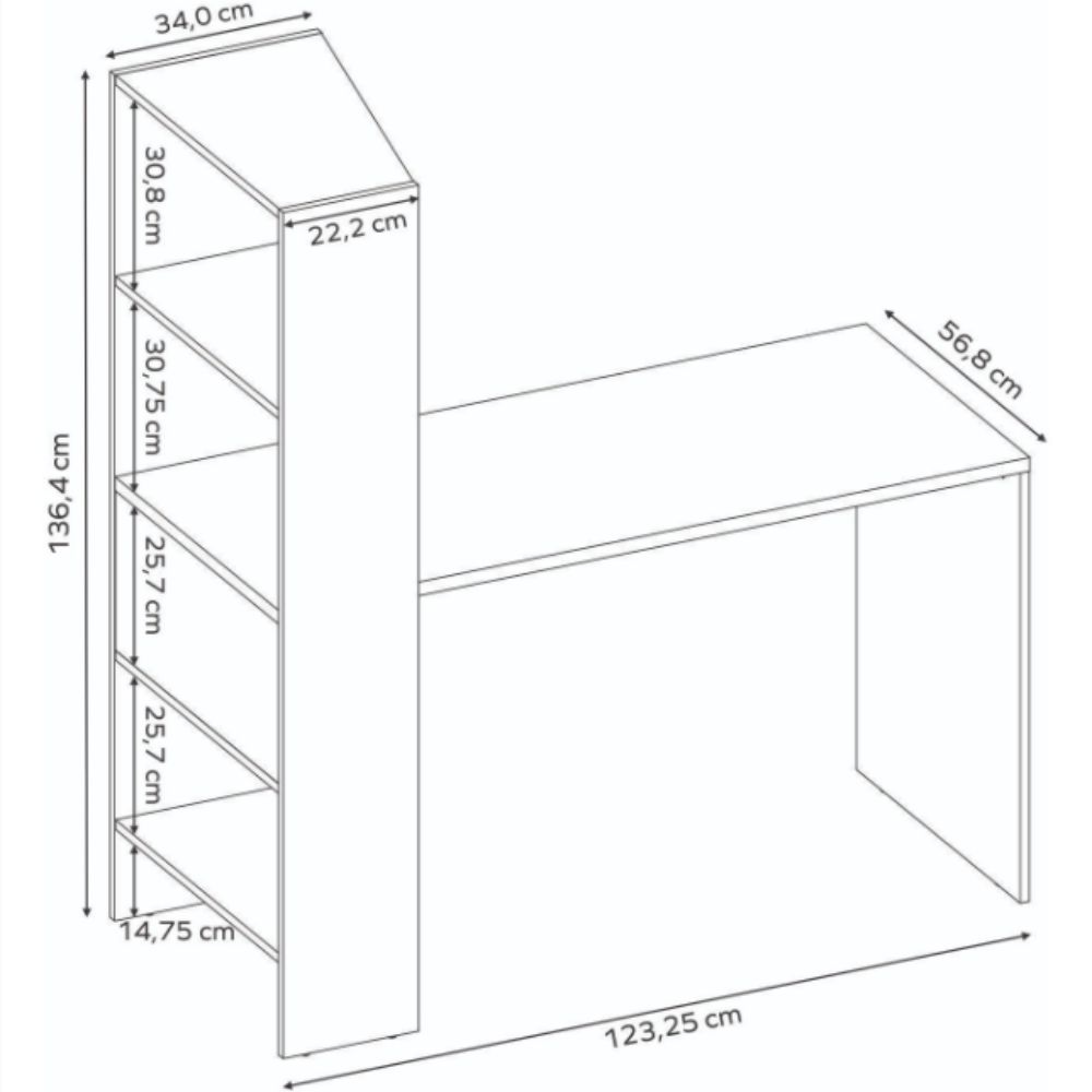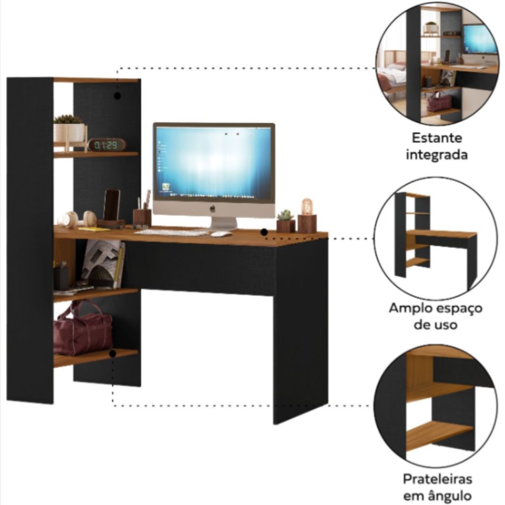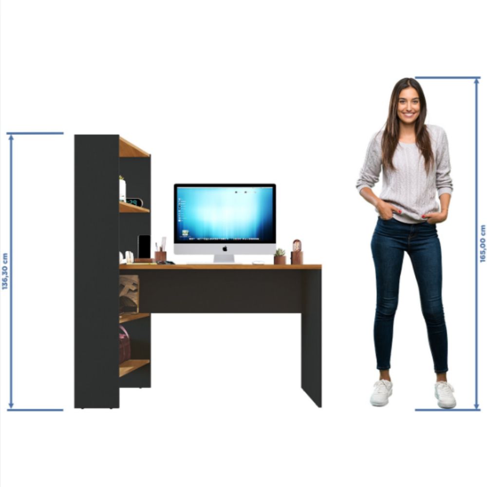 O modelo conta ainda com quatro prateleiras laterais espaçosas, perfeitas para organizar livros, documentos, materiais de escritório e objetos decorativos, ajudando a manter o ambiente sempre organizado e funcional.